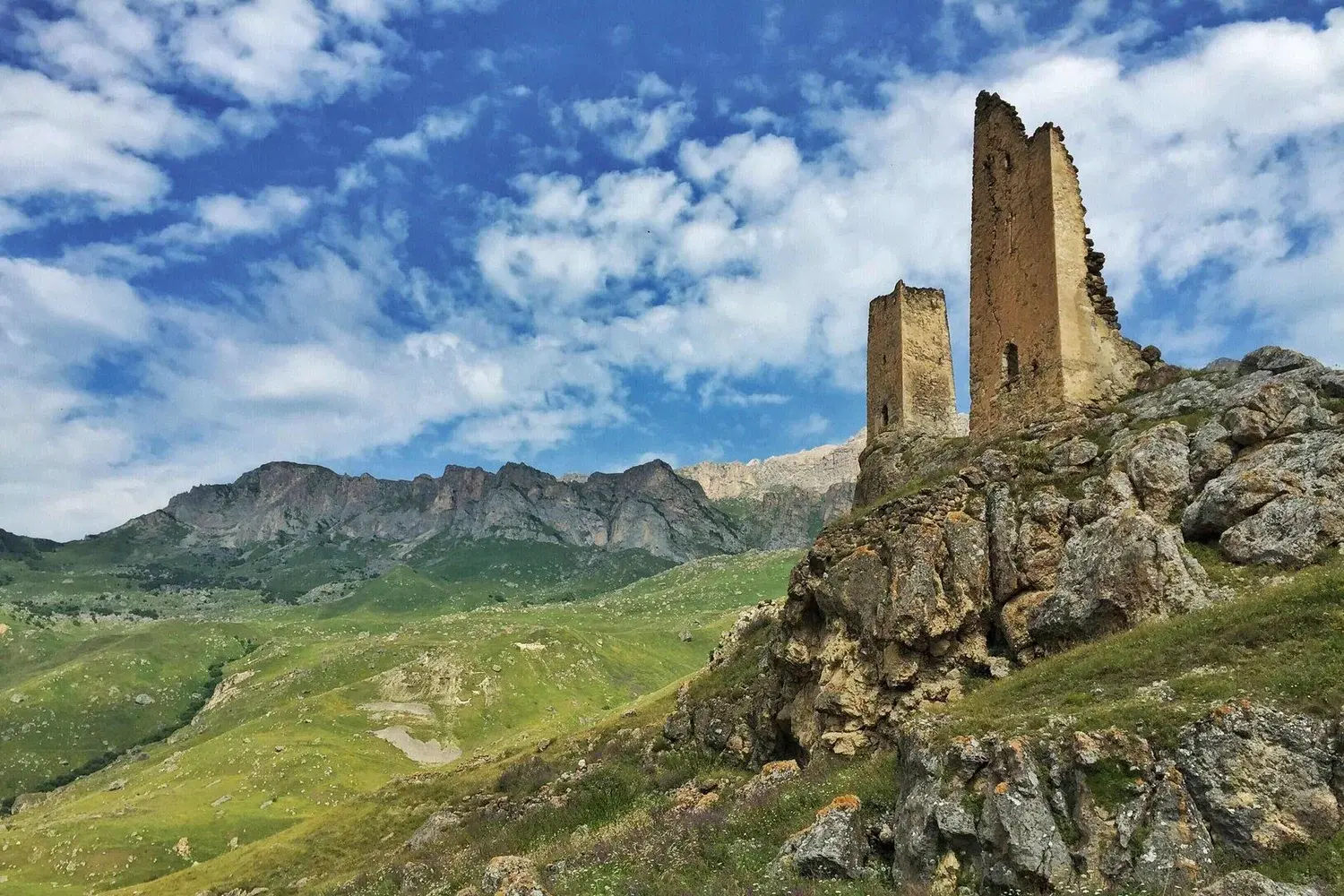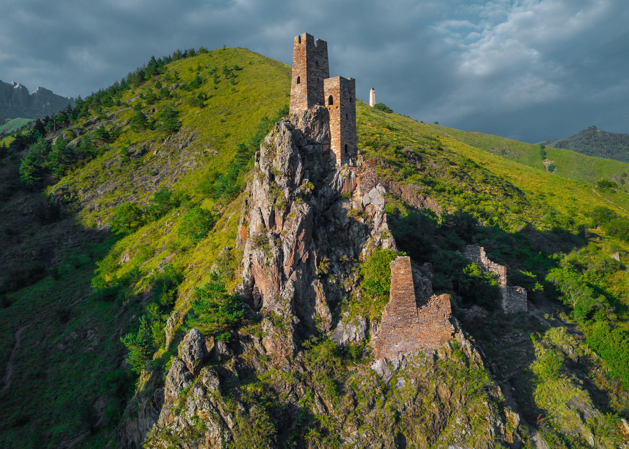«Башня Курта и Тага» Любопытствующие туристы, бойкая торговля горными «аксессуарами» и потрясающие фотозоны стали нынешней действительностью одного из уникальных мест Северной Осетии - аула Уаллагсых Здесь на горе, туристов встречает символ целого осетинского рода. Это место силы не могло остаться не тронутым веками и суровыми ветрами гор, создавшие руины.