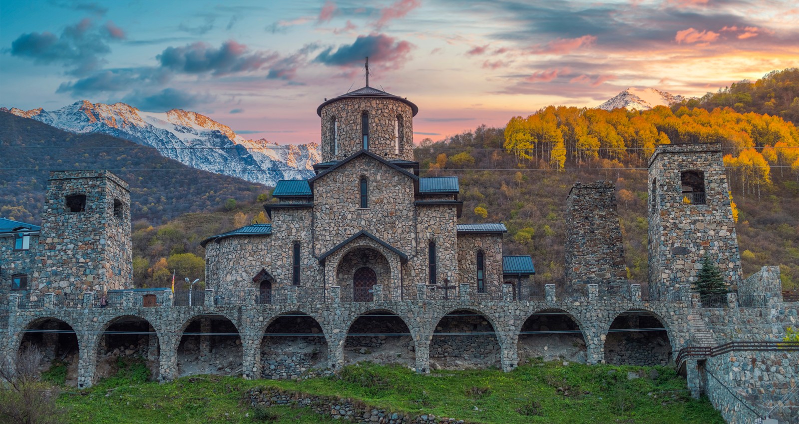 «Аланский монастырь» самый высокогорный в России. Стены были построены не так давно – в 2000-х годах. Однако они настолько органично вписались в пейзаж окружающего ущелья, что кажется, будто стояли тут всегда. Монастырь не только невероятно фотогеничен, но и знаменит далеко за пределами Северной Осетии. Многие приезжают в Куртатинское ущелье именно ради монастыря.