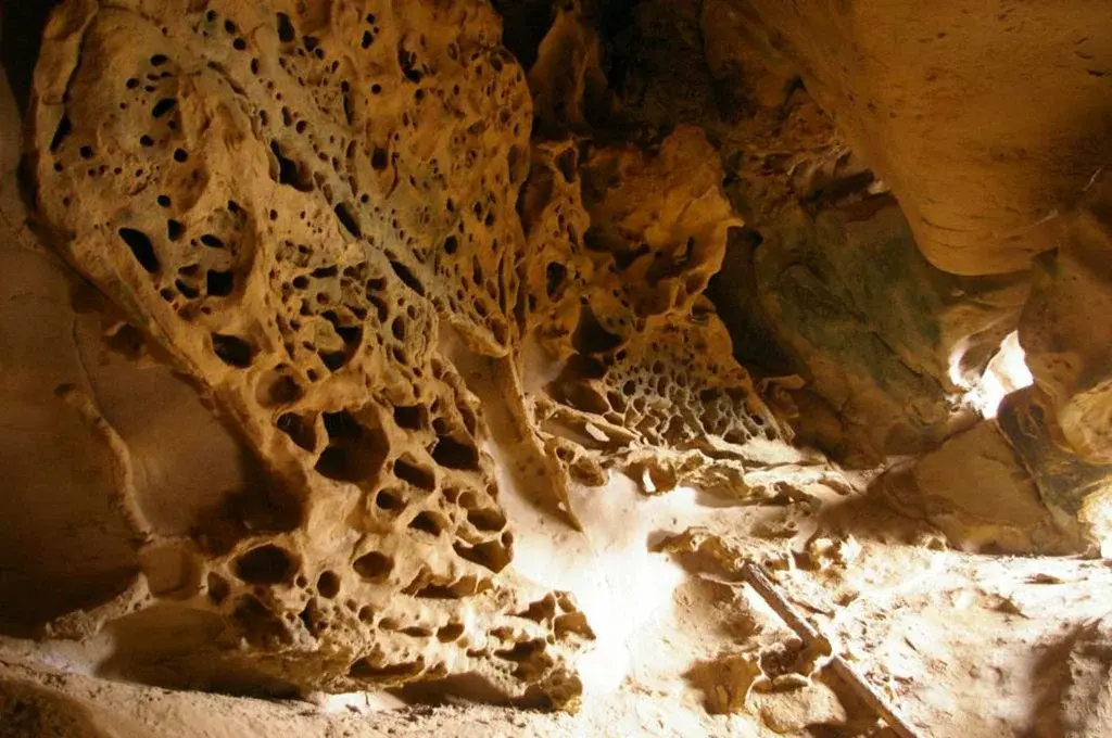 «Сырные пещеры» Почему сырные? Эта уникальная геологическая достопримечательность — результат работы ветра и воды, которые годами вытачивали в мягком песчанике причудливые углубления и узоры, похожие на сыр с дырками.