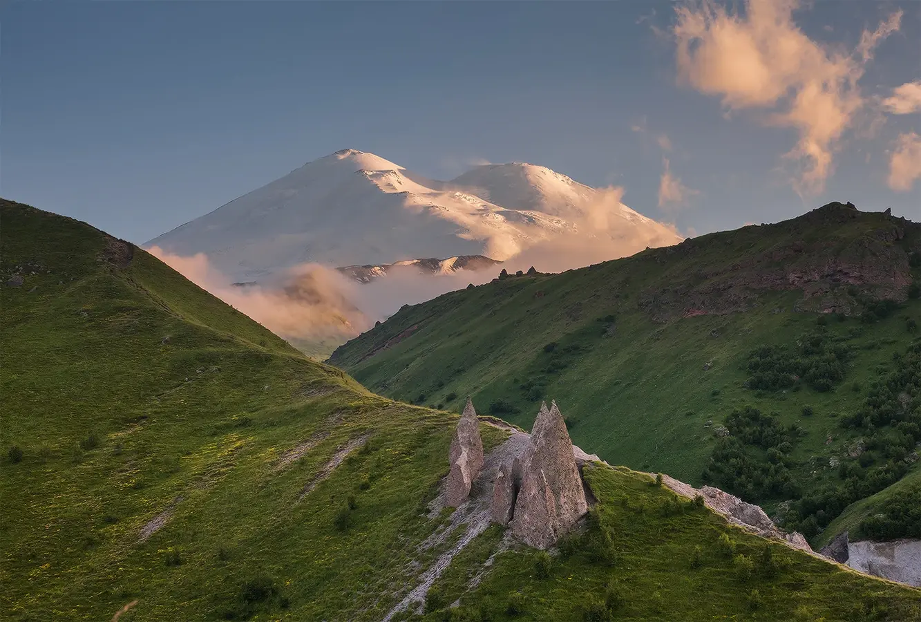 👣Мы посетим: «Гум-Баши» - это самый высокогорный перевал в России, через который проходит очень живописная дорога. Асфальтированная трасса змеей петляет к смотровой площадке на высоте больше 2000 м. над уровнем моря, откуда хорошо виден Кавказский хребет с его главным украшением - двуглавым Эльбрусом.