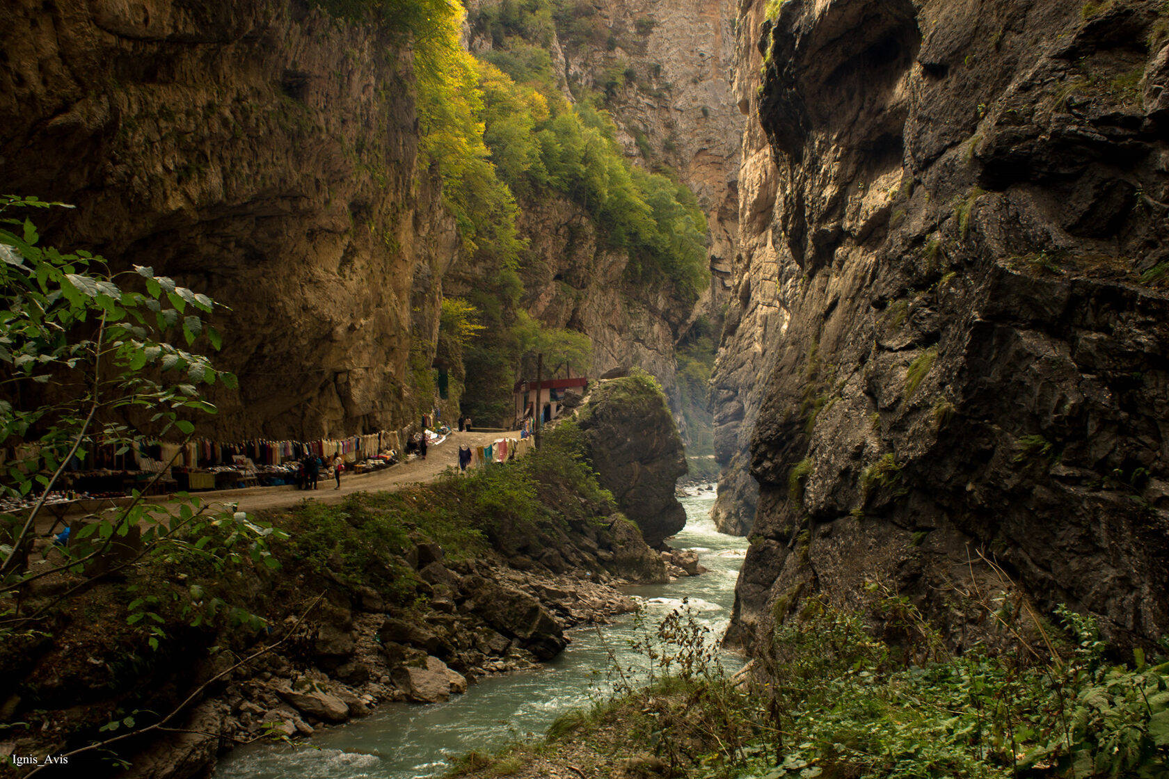 «Кадаргаванская теснина» небольшой, но очень красивый каньон. Он находится совсем рядом с дорогой, а глубину имеет с 20-ти этажный дом. Самую узкую часть каньона – теснину Кадаргаван - за весьма характерную форму называют «песочные часы». Ширина теснины всего 3-4 метра, и она находится между большой горой и маленькой скалой. Создаётся впечатление, будто от горы отрезали кусок от торта и поставили рядом.
