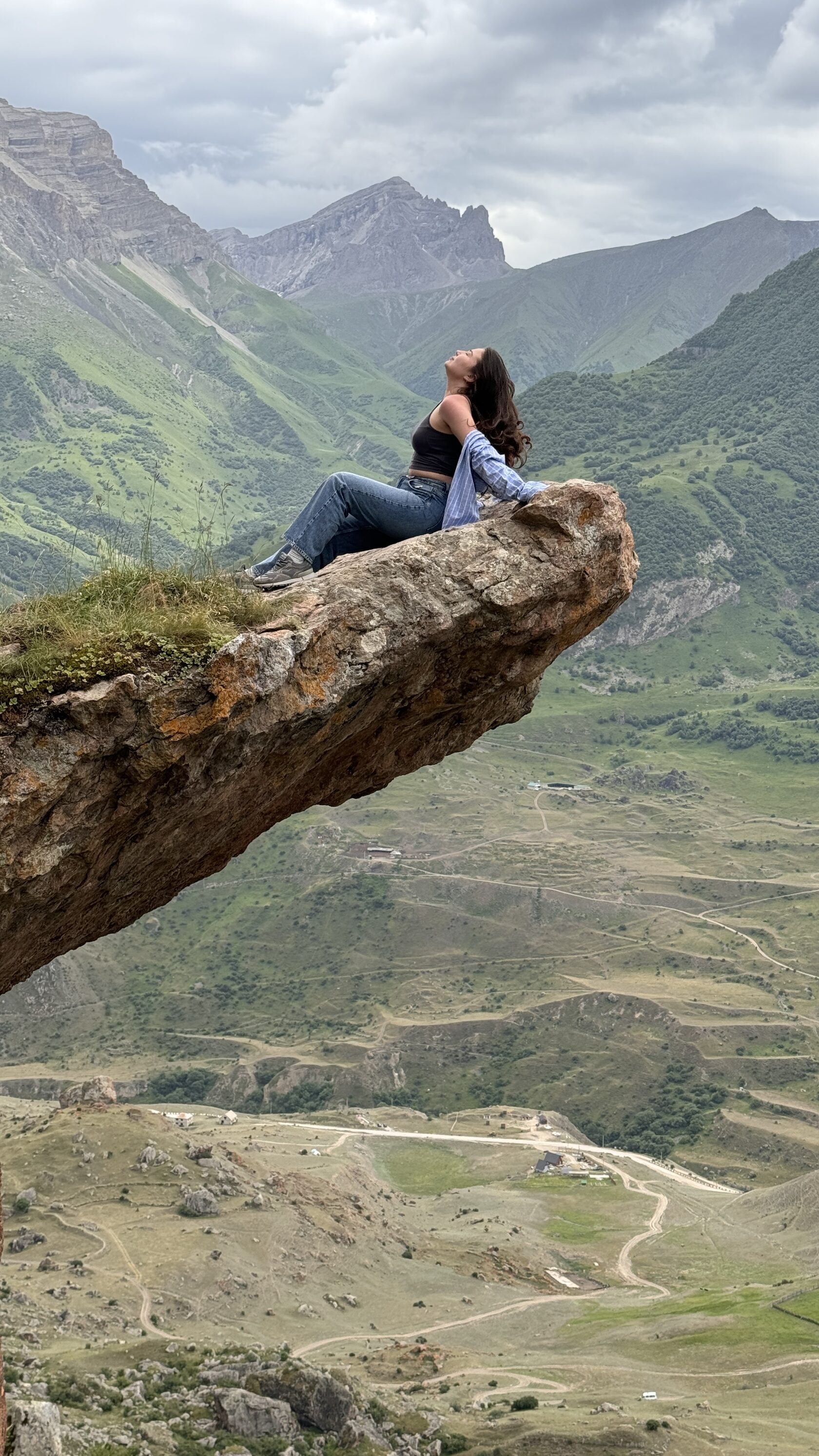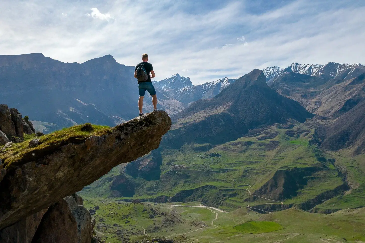 «Язык Тролля» в ущелье Безенги, который ничуть не уступает норвежскому. Отсюда открывается невероятный вид на знаменитую Безенгийскую стену и горы Пятитысячники. С этой точки фотографии получаются великолепные.