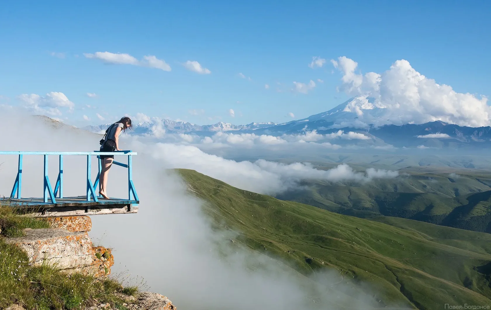 «Смотровая площадка» вид с моста над пропастью в 900 метров, именно здесь Лермонтов написал свою картину «Вид на Эльбрус», и это не удивительно, ведь лучше, чем здесь нигде не откроется такой вид!