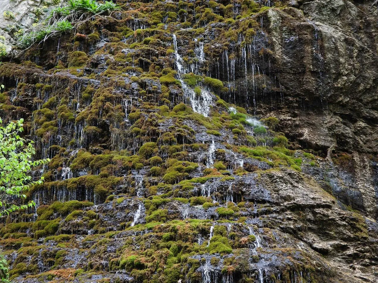 Селение Карасу. В нескольких километрах от селения Карасу, прямо у дороги стекает кристальной чистоты водопад. И пусть он совсем небольшой, но очень живописный. Вода струится не по голым скалам, а по разноцветному мху и проходя сквозь горные породы, вода становится очень вкусной. Она абсолютно чистая, ее можно пить и набрать с собой в поездку.